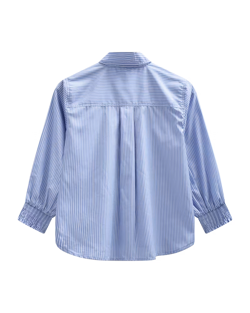Skjortan har en klassisk krage och knappstängning framtill, vilket ger ett stilrent och sofistikerat uttryck. Den lösa och eleganta passformen gör den enkel att bära både instoppad i kjol eller byxor, eller mer avslappnat över ett par jeans.