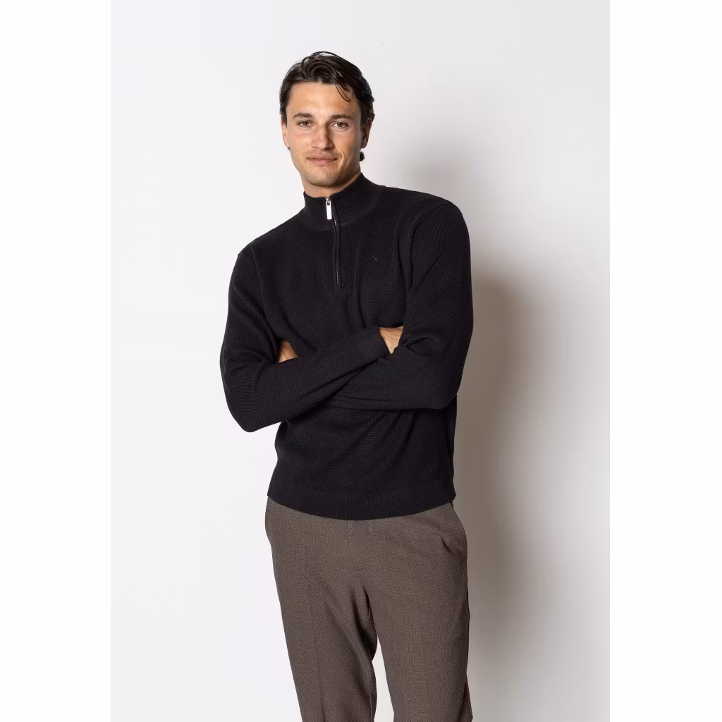 Oscar Half-Zip Knit finns i flera olika färger, så att du enkelt kan hitta din favorit som matchar din garderob. Den halva dragkedjan ger dig möjligheten att bära tröjan på olika sätt – stängd för en mer formell look eller öppen för en ledigare stil.